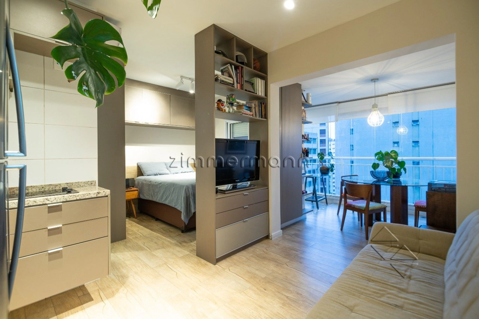 Apartamento de 37 m², localizado em andar médio. Dormitório com armários e ar-condicionado. Living com terraço amplo, cozinha americana e acabamento moderno. Excelente opção para quem busca praticidade e conforto em um espaço compacto.
