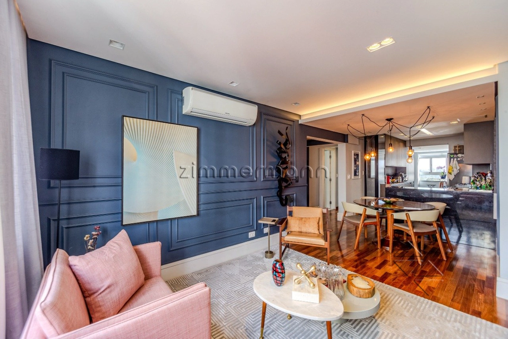 Conta com 2 suítes, closet, lavabo e cozinha americana integrada, proporcionando um ambiente mais amplo e acolhedor. Ar-condicionado em todos os ambientes e 1 vaga de garagem com serviço de manobrista.