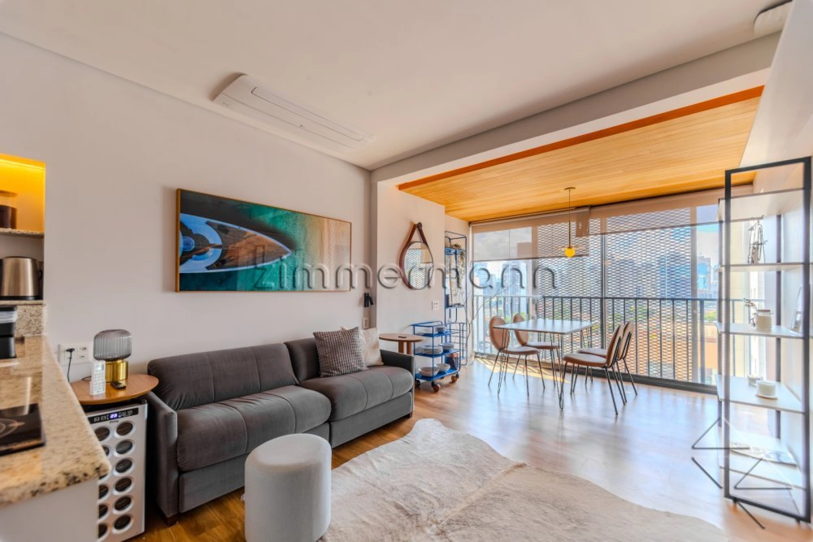 Totalmente mobiliado, conta com lavanderia equipada, piso de madeira e acabamentos contemporâneos. A decoração é sofisticada, sem abrir mão da funcionalidade.